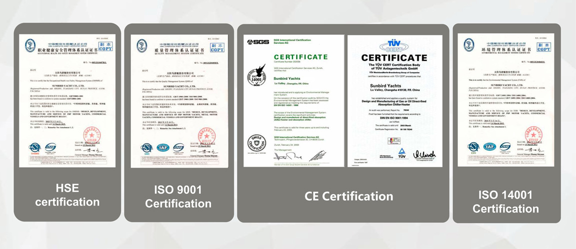 we own two production bases, one in Yuanjiang city, Hunan province and the other in Zhuhai city, Guangdong province, as well as five branches oriented in yacht design and sales respectively. The five branches are Raphael Changsha, Rimbaud Bay Shanghai, Plandy Hong Kong, Plandy America and Marco Polo Italy. It covers 370,000 square meters in total, wherein 310,000 square meters in Hunan province and 60,000 square meters in Zhuhai city, also we have more than 900 employees including more than 100 R&D technicians and designers. Owning more than 200 sets of imported ship models, molding machines and composite materials testing machines, JNCN YACHTS is able to build 1000 boats per year and is the record holder in China with more than ten thousand boats sold locally and abroad 18 countries and regions. Sunbird yacht became Famous Trademark of China in May, 2011.