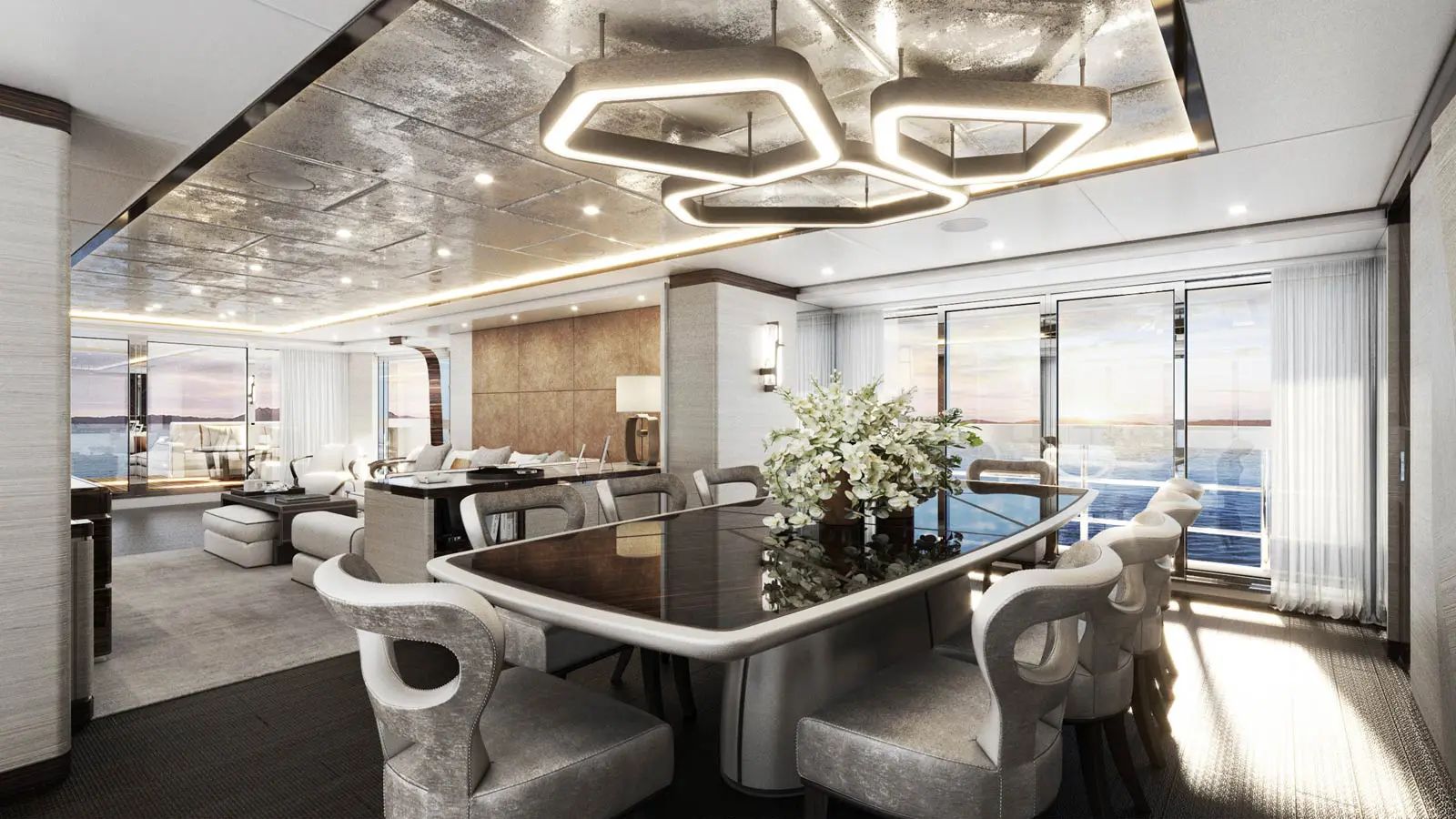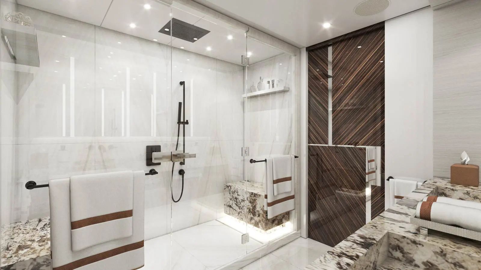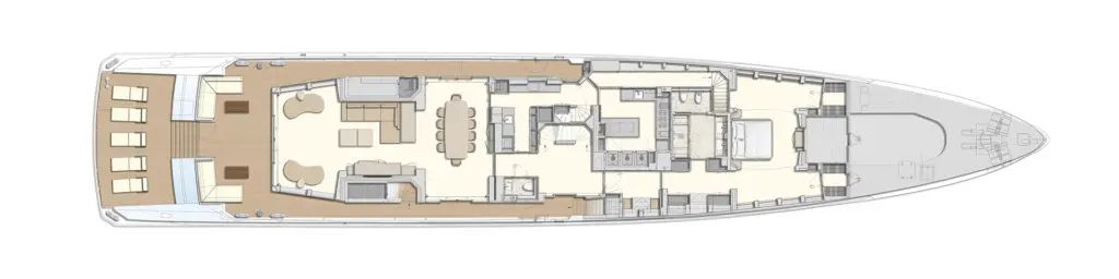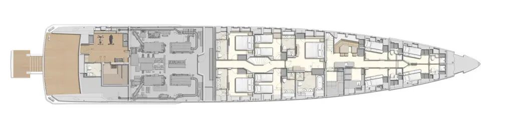 Cabins: Full-beam owner’s stateroom, one full-beam VIP suite, two double guest suites and two twin guest suites