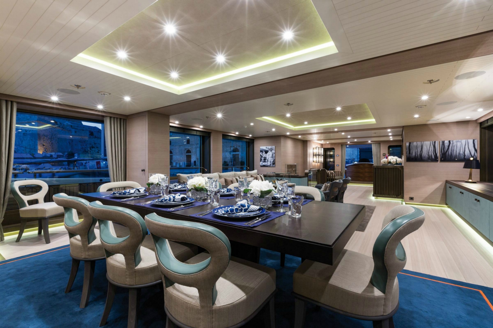 The AMELS 180 is a 55.00m full displacement, twin screw motoryacht with round-bilge steel hull and aluminium superstructure fabricated and finished by selected specialists. All machinery is engineered and located for easy servicing, based on years of AMELS' experience and crew feedback. The yacht carries more than sufficient fuel for transatlantic range at speed of 13 knots. The AMELS 180 exterior is designed by Tim Heywood. The interior, consists of three accommodations decks and a large sun deck. As with all LIMITED EDITIONS models, the AMELS 180 general arrangement emphasises efficient space usage for owners, 10 guests and 12 crew plus captain, with maximum stowage for all purposes, including chartering. It also allows the owner a great variety of luxury accommodations styles, dining choices, large outdoor areas, a generous quantity of water-sports and diving gear, and much more.