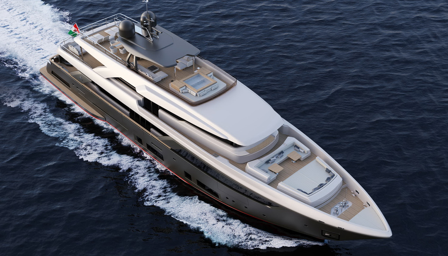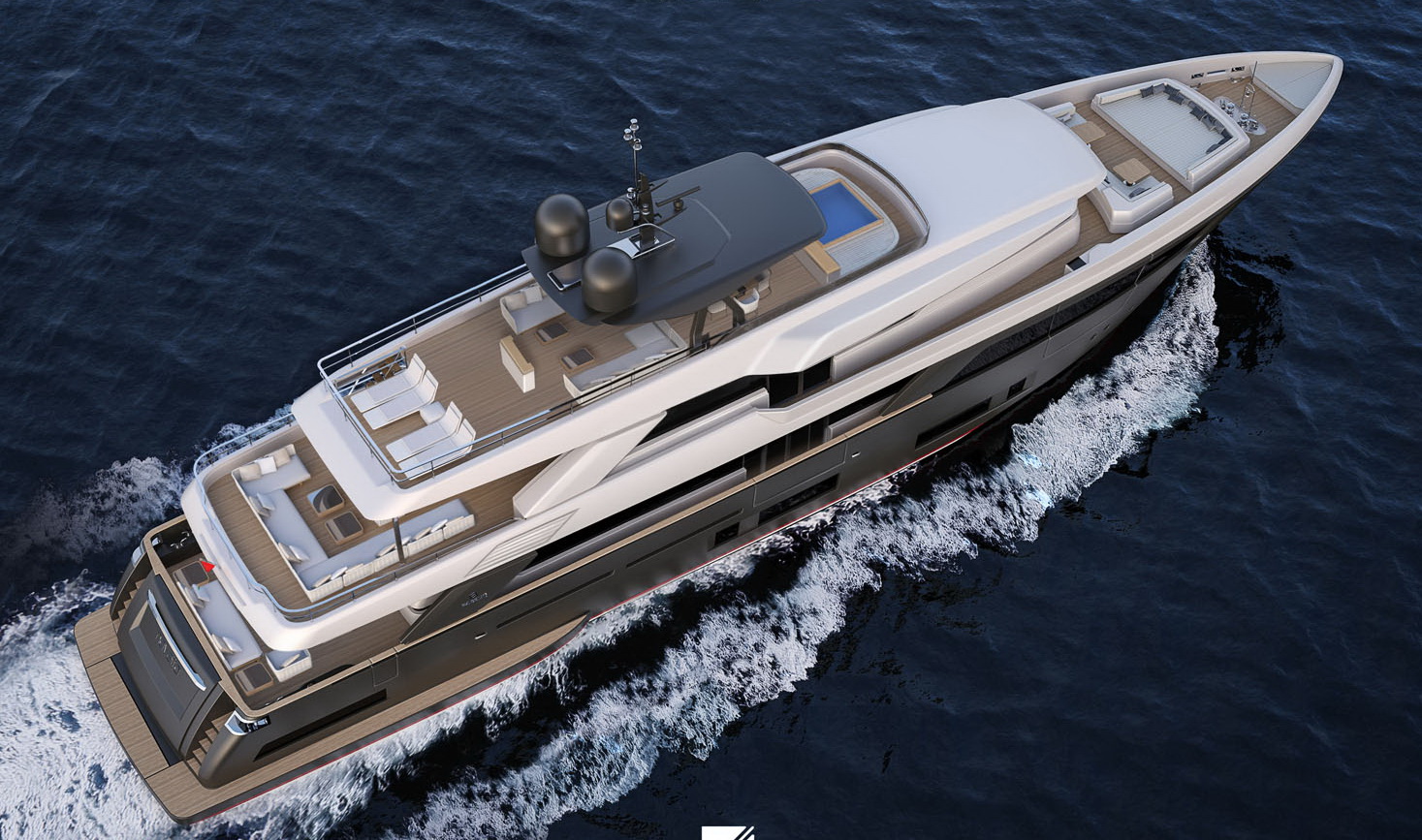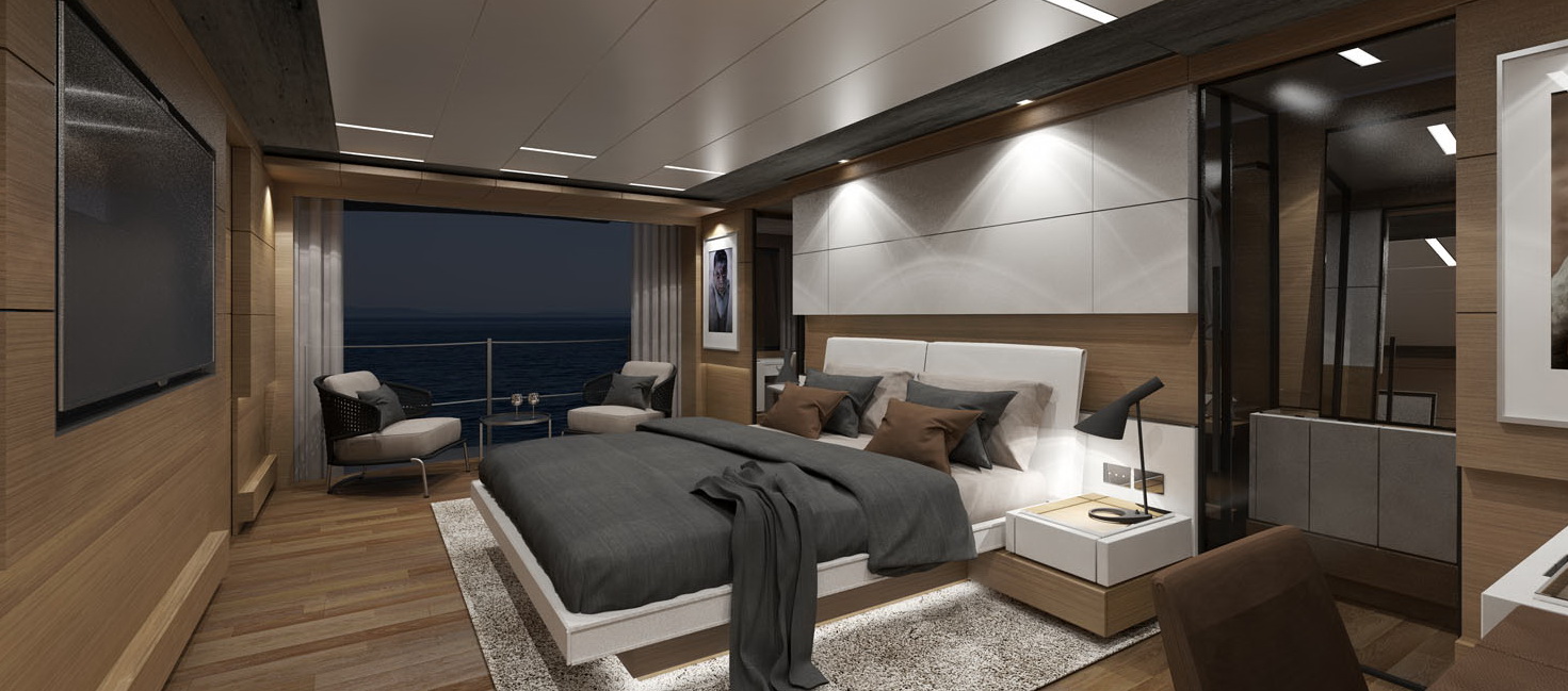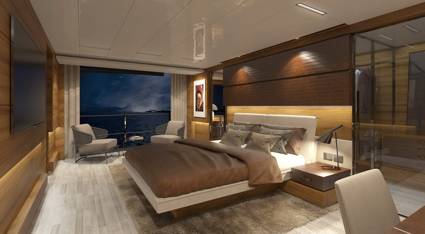 The biggest semi-displacement hull ever built by Custom JNCN, a seaborne vision that is a showcase for design in motion, sophisticated elegance, and extraordinary performance. Every aspect of both the interior and exterior of this highly desirable yacht can be customised to take full benefit of its generous volumes and four decks, offering a perfect place to relax and enjoy the supreme quality of life on board. A huge suite on the main deck is reserved for the owner, who can opt for four VIP suites or five standard en-suite cabins to accommodate guests thanks to the versatile layout of the lower deck. The aft area is set aside for the large beach club at sea level offering fun and relaxation; the garage opens out onto the sea and is equipped with the new system for launching and hauling out of tenders and water toys.