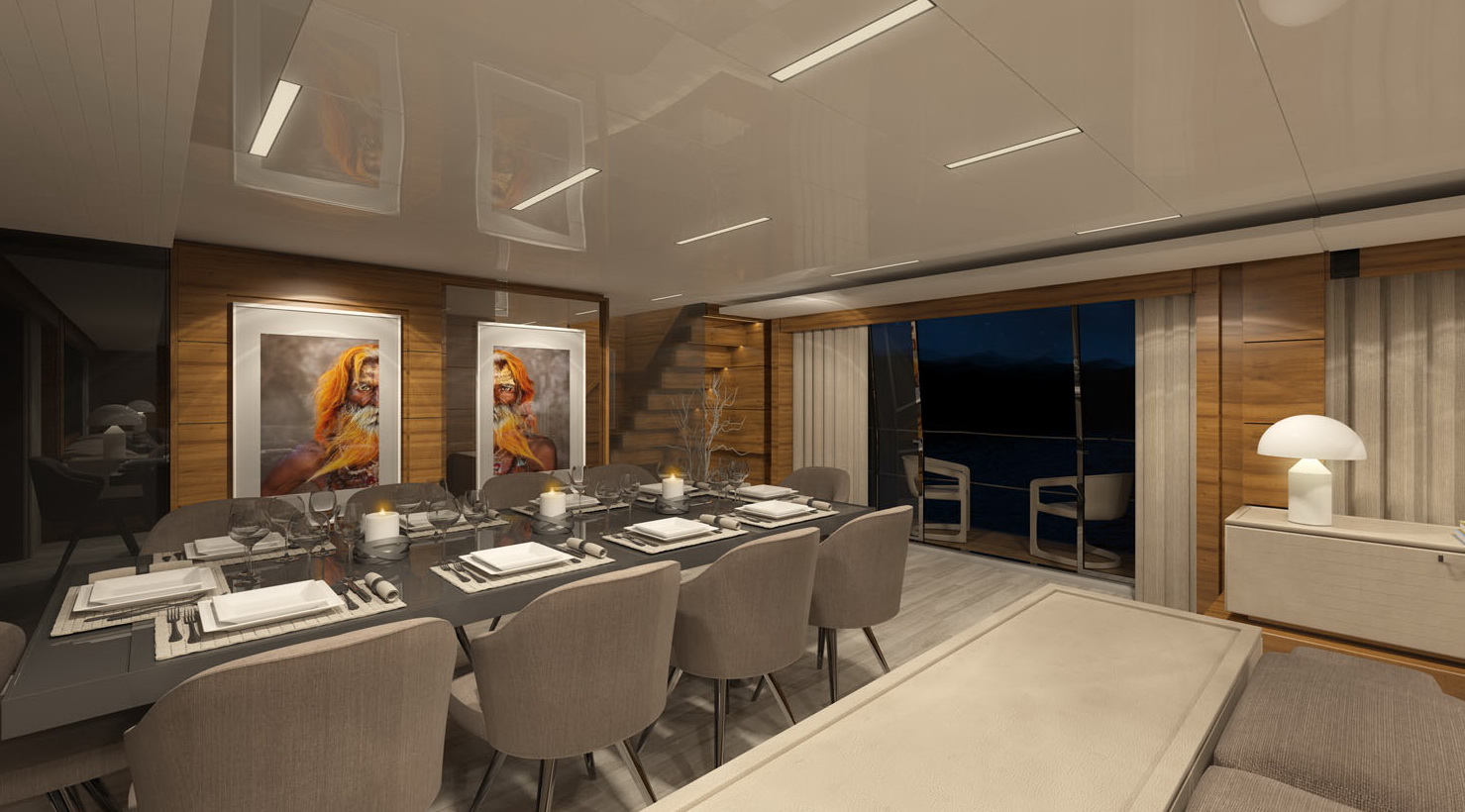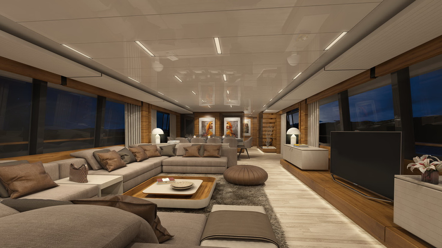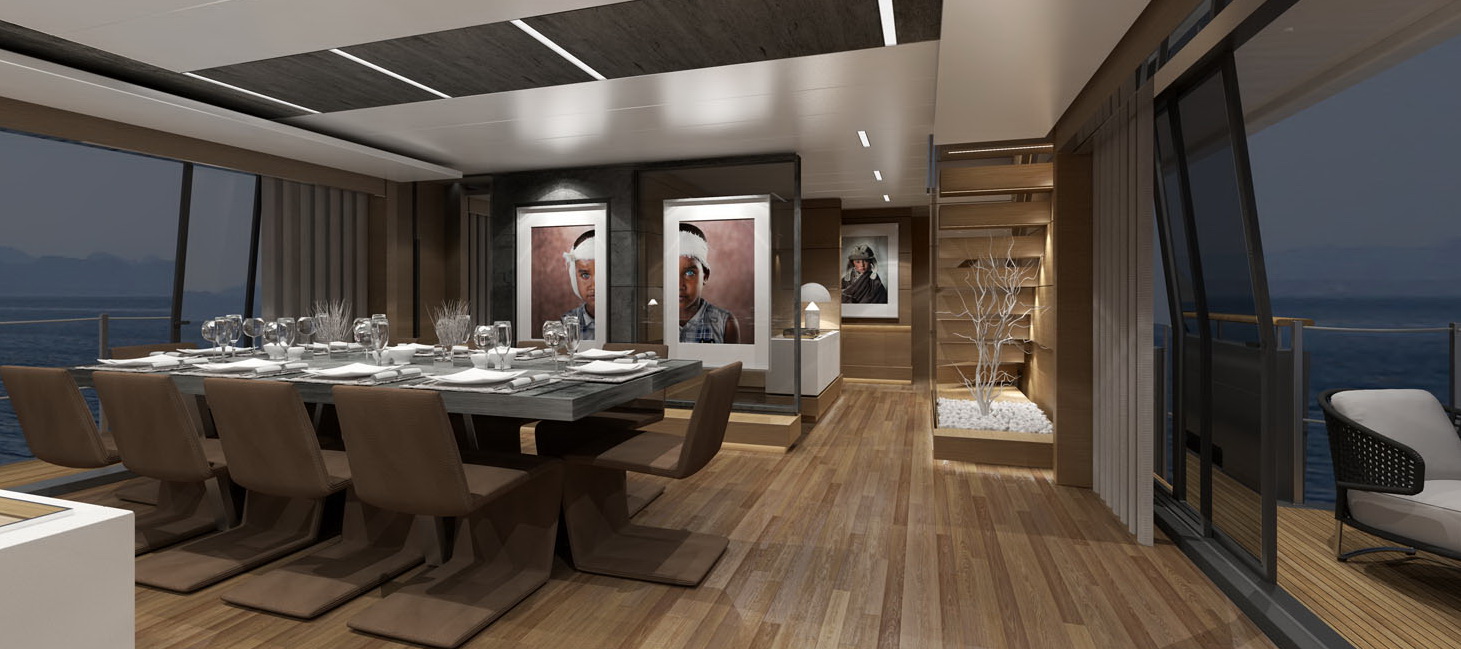 The biggest semi-displacement hull ever built by Custom JNCN, a seaborne vision that is a showcase for design in motion, sophisticated elegance, and extraordinary performance. Every aspect of both the interior and exterior of this highly desirable yacht can be customised to take full benefit of its generous volumes and four decks, offering a perfect place to relax and enjoy the supreme quality of life on board. A huge suite on the main deck is reserved for the owner, who can opt for four VIP suites or five standard en-suite cabins to accommodate guests thanks to the versatile layout of the lower deck. The aft area is set aside for the large beach club at sea level offering fun and relaxation; the garage opens out onto the sea and is equipped with the new system for launching and hauling out of tenders and water toys.
