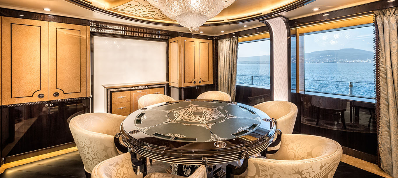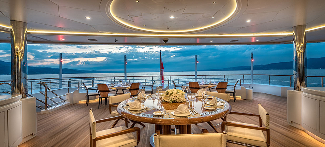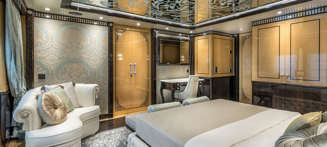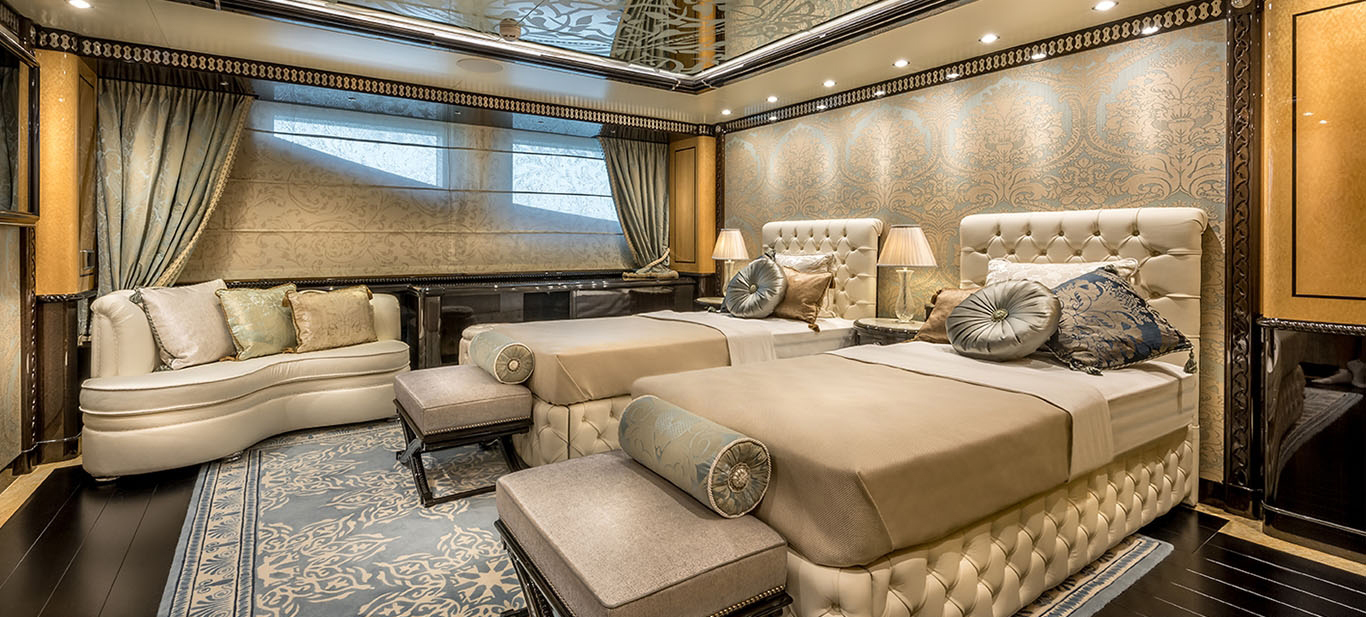 Offering long range and accommodation for up to 24 guests in 12 staterooms. Built to a very high standard, with interior by Cristiano Gatto Design, the yacht boasts a cruising speed of 17 knots, has a hammam and sauna in the beach club and a tender garage for jet-skis and a small tender.